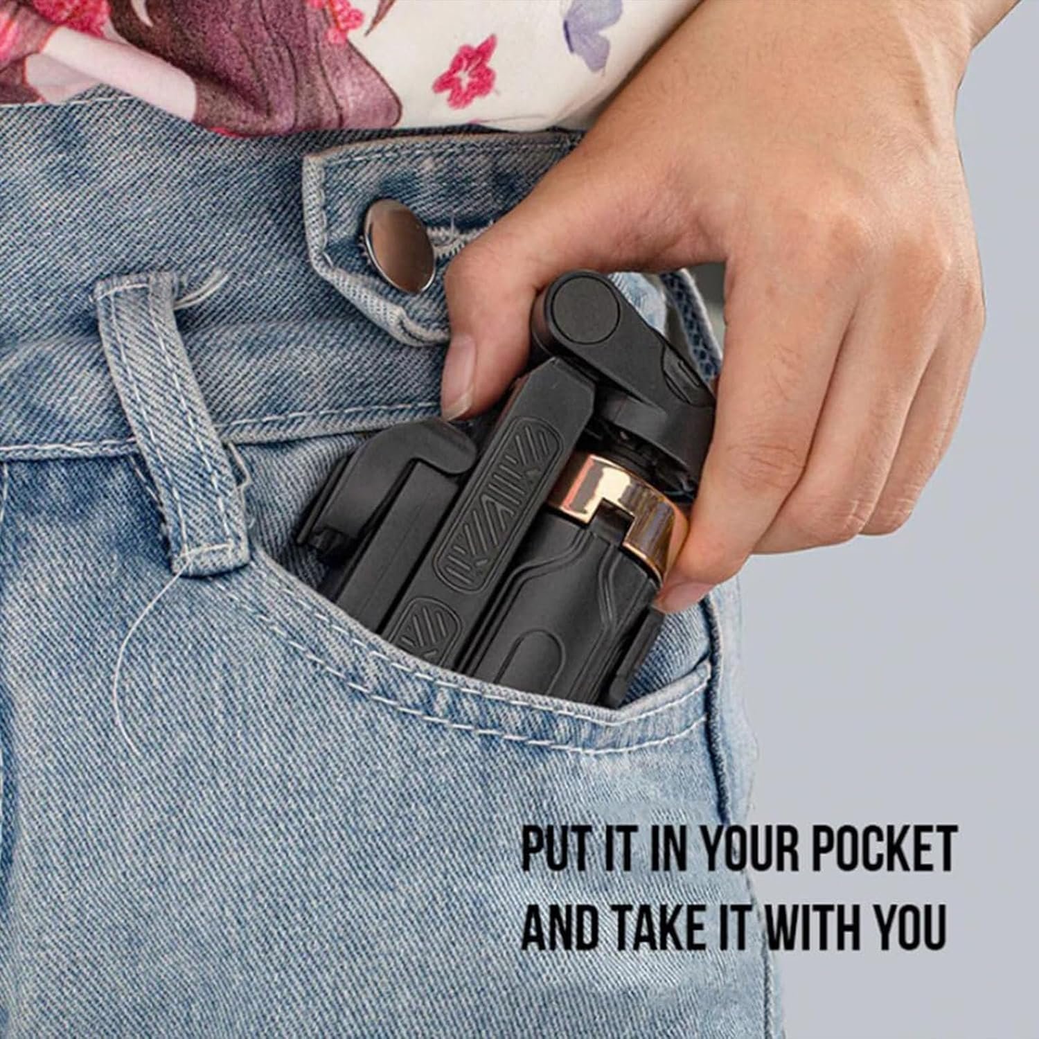 360°Rotation: The tripod mini jj02 comes with a detachable bluetooth remote control that makes it easy to remotely control your phone’s camera, allowing you to capture the perfect shot with hands-free operation.