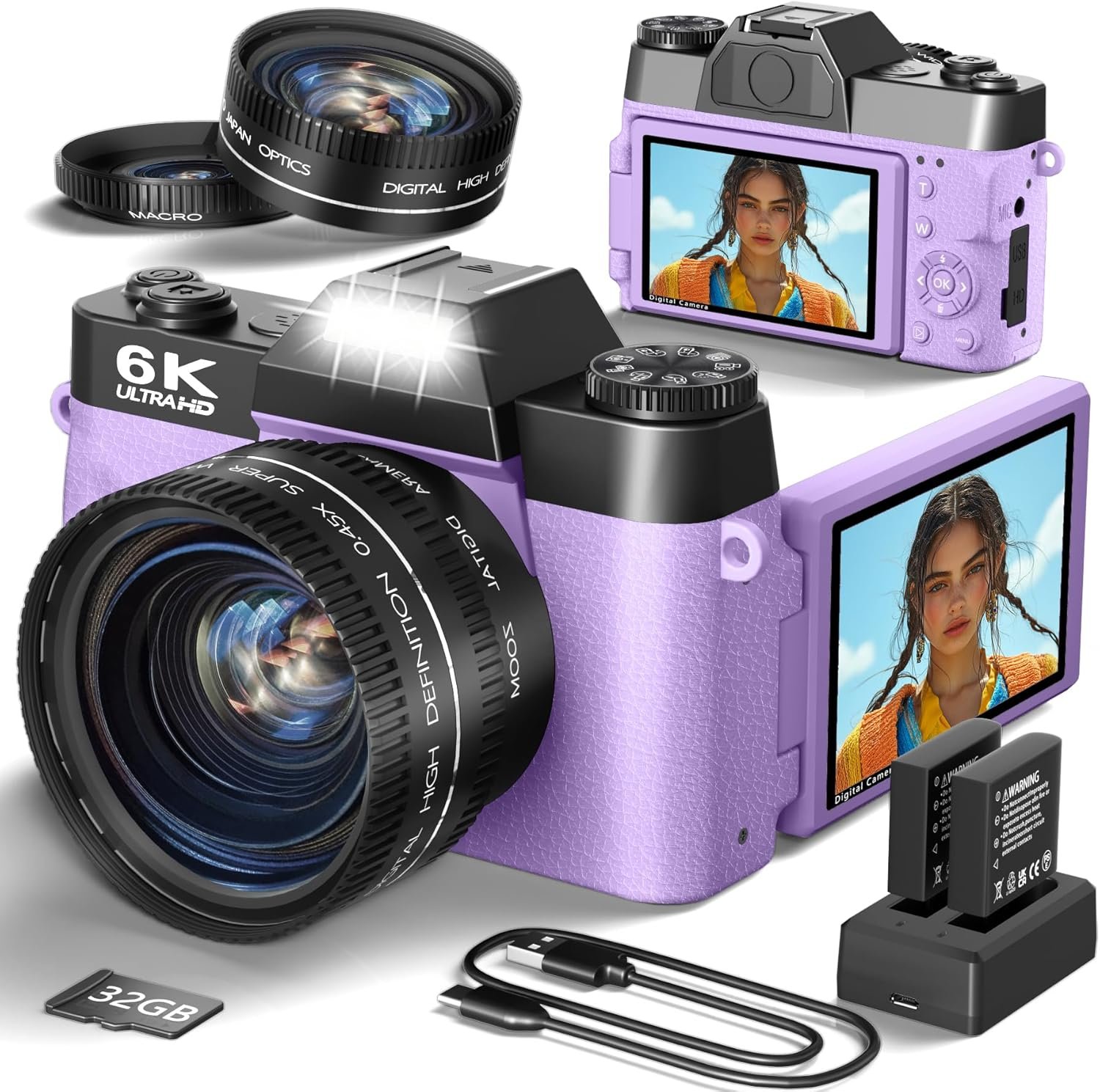 【64MP Camera for Photography & Video】This digital camera excels in both photography and video, offering 6K recording and 64MP photos. With 16X zoom, video pause, recording while charging, loop recording, continuous shooting, silent mode, and a self-timer, it’s versatile and user-friendly. Its upgraded chip delivers ultra-high-definition, true-to-life images, making it a perfect gift for loved ones.