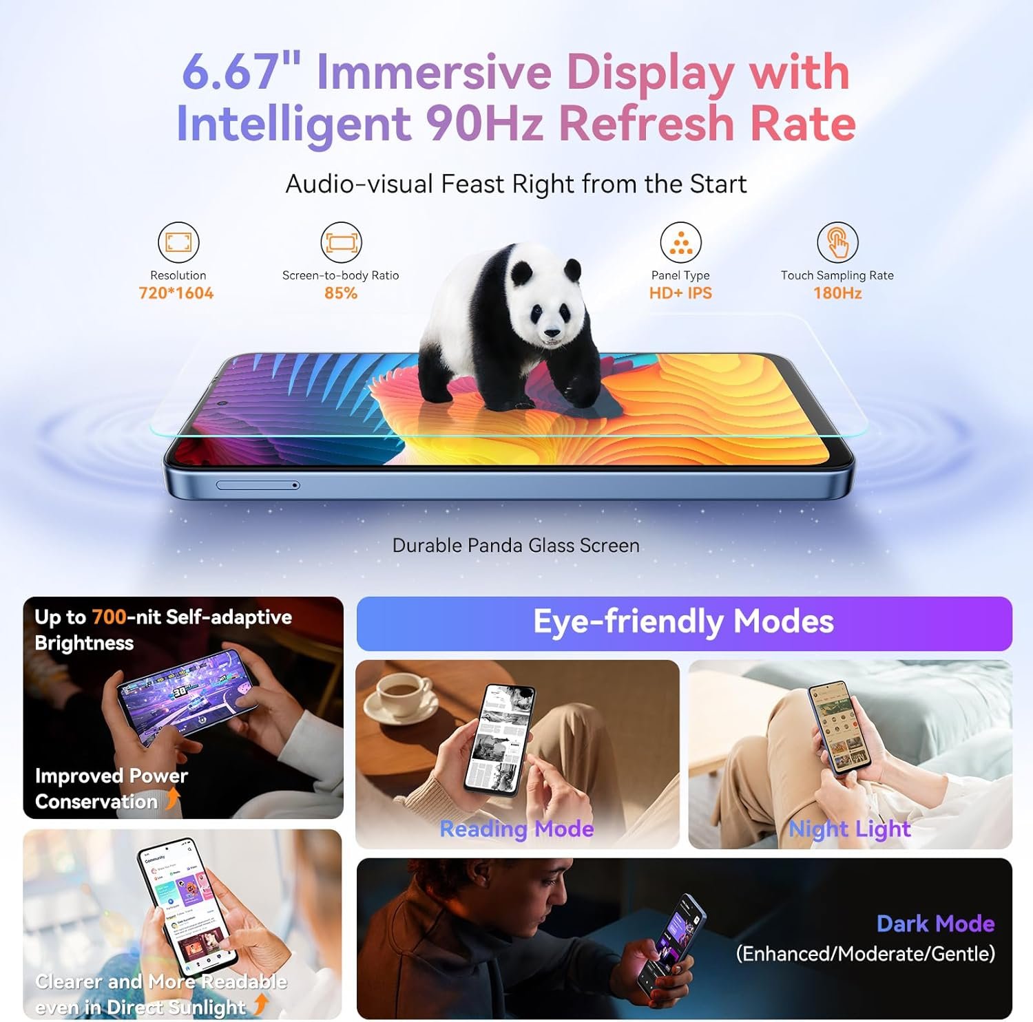 【6.67-inch Large Screen】: Blackview SHARK 9 smart phone features a 6.67-inch HD+ display, offering over 85% screen usage and a smooth 90Hz refresh rate (720*1604), providing a more comfortable viewing experience. High-fidelity colors, clear images, Enjoy full viewing angles, 10-point touch technology, and a bright display of up to 700(MIN) for happy moments anytime.