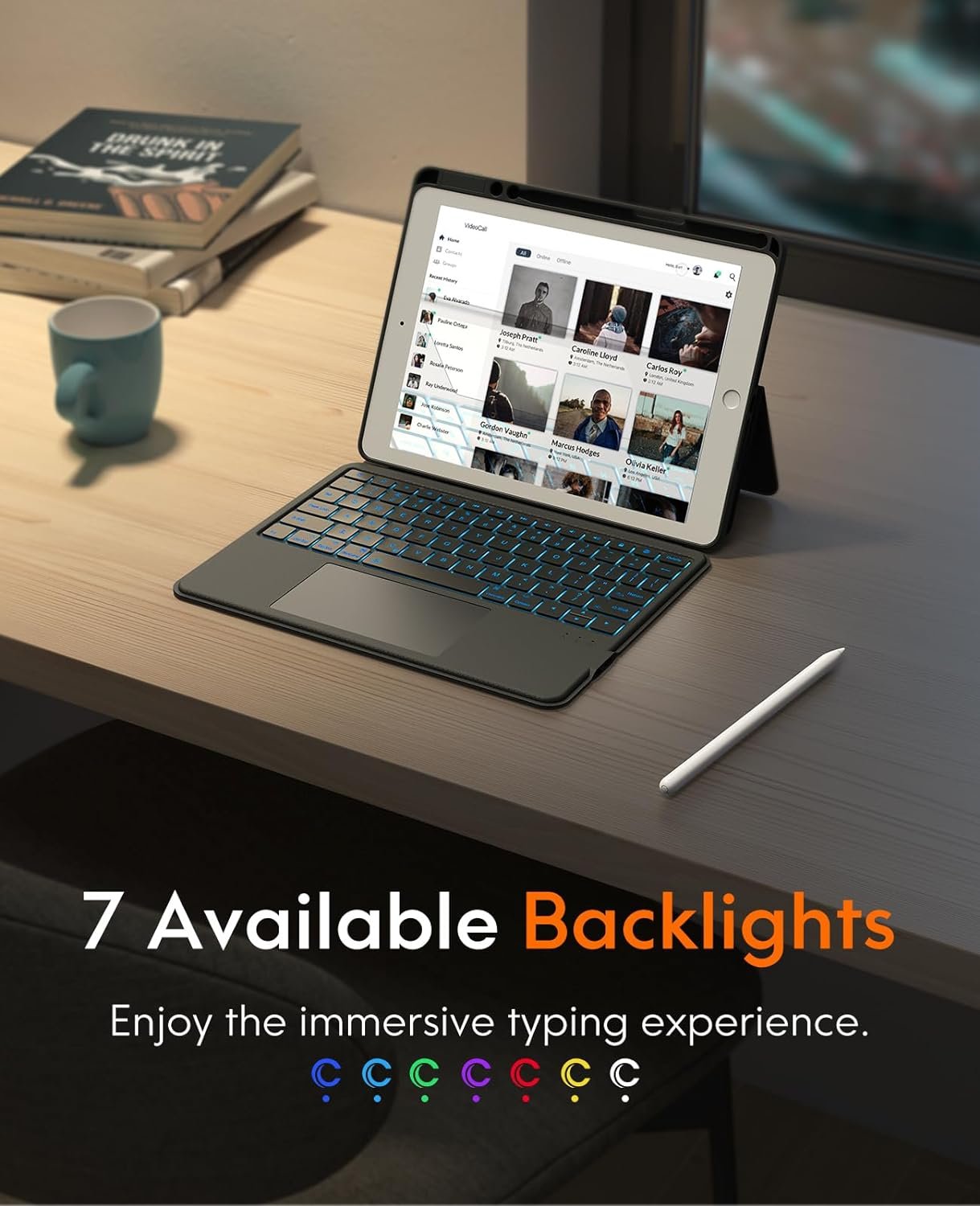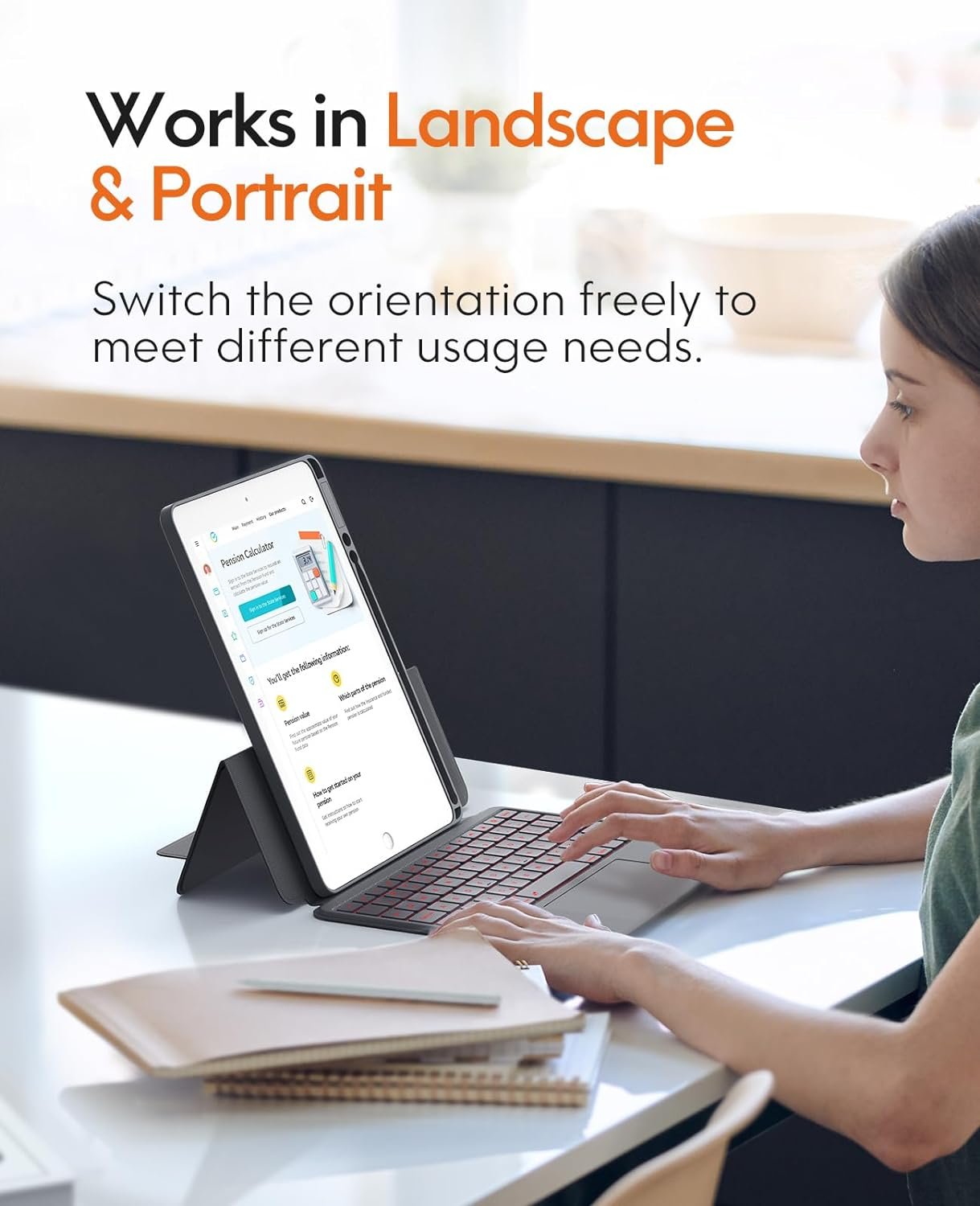 【Magnetic Detachable】 The 10.2-inch for iPad (9th/8th/7th Gen) is securely attached to the back of the keyboard by a built-in magnet, ensuring that the tablet stays in place and doesn’t wobble during use.