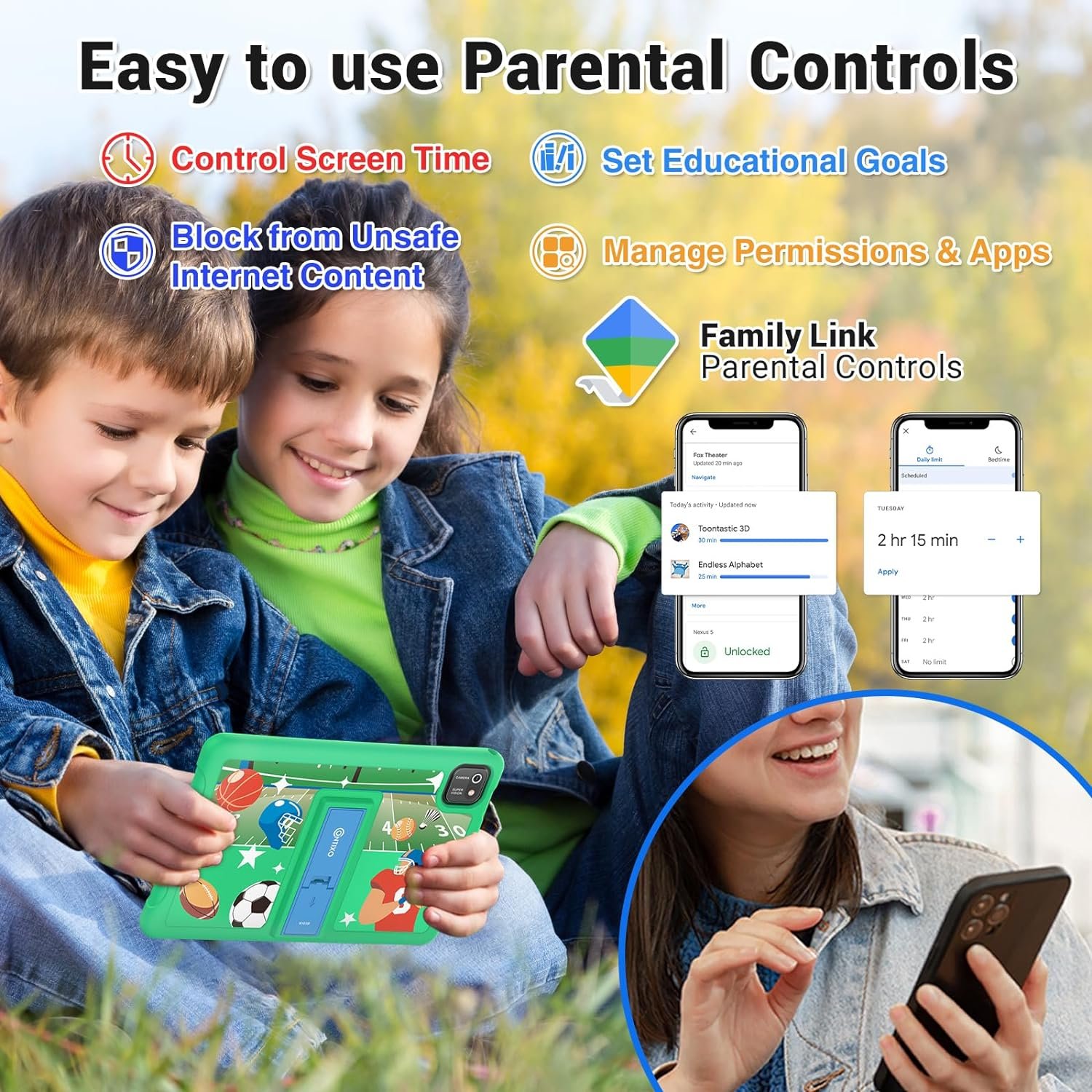 EASY PARENTAL CONTROLS & FULL ACCESS TO GOOGLE – Kids Place app lets you manage screen time and kid-friendly content. The filter feature ensures safe browsing, with no ads or in-app purchases without permission. Access Google services like Gmail, YouTube Kids, and Netflix.