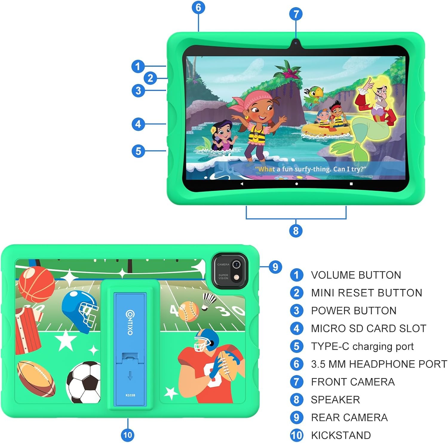 A PERFECT WiFi ANDROID TABLET FOR ONLINE LEARNING – The Contixo K103 features WiFi and Google Services, including Google Kids Space and YouTube Kids. Download educational apps like Khan Academy for Kids, Duolingo, and ABC Mouse from the Play Store. An ideal learning partner for every home.