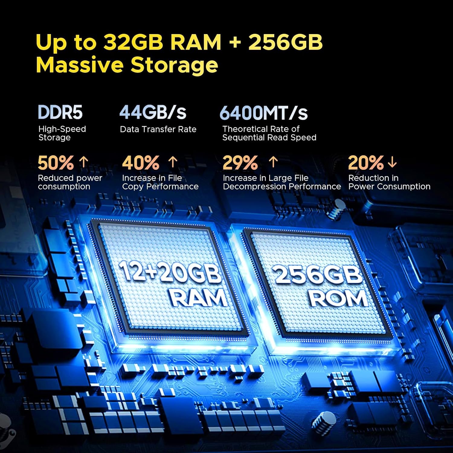 【𝟑𝟐𝐆𝐁 𝐑𝐀𝐌 (𝟏𝟐+𝟐𝟎) +𝟐𝟓𝟔𝐆𝐁 𝐑𝐎𝐌】DOOGEE S200 5G rugged smartphone comes equipped with a massive 32GB RAM (12GB physical + 20GB virtual) and 256GB of storage, powered by DDR5 memory for ultra-fast file transfers up to 44GB/s and 29% better file decompression. S200 5G rugged smartphone allows for seamless downloading of large files and effortless switching between apps and social media. With 5G support, the large memory ensures smooth multitasking without needing to close background apps. Plus, you can expand the storage up to 2TB with a TF card, giving you plenty of space for entertainment and more.