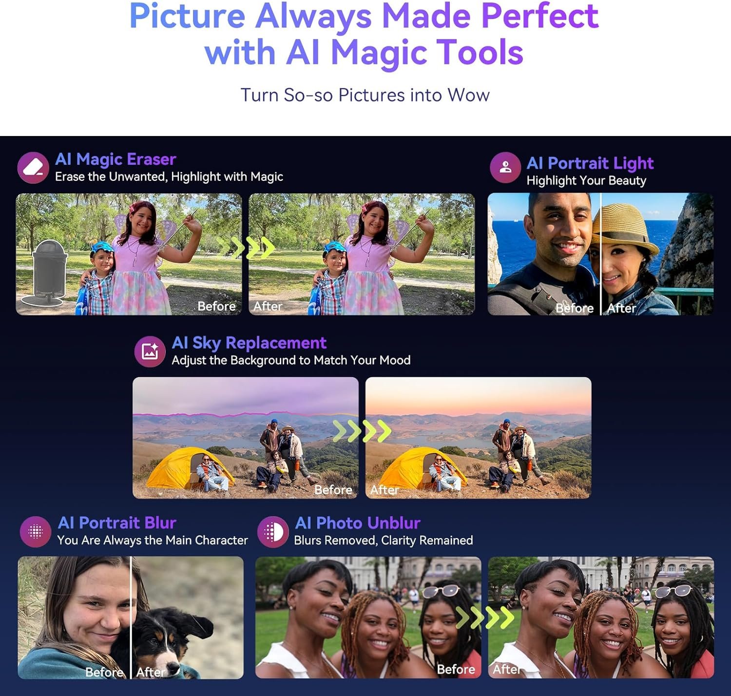 【50MP JN1 AI Camera–makes you shine】OSCAL TIGER 13 Android 14 Phone’s stunning 50MP main camera. With lightning-fast instant capture capabilities, you’ll never miss a moment even during the busiest of activities. The advanced Double Super PD technology of this android phone ensures rapid focus and zero shutter lag, giving you the confidence to snap pictures effortlessly. No matter the lighting, your shots will remain clear and vibrant. OSCAL TIGER 13 cellphone 256GB excels in low-light conditions, allowing you to capture stunning images even in dim environments. Plus, 4K QHD video recording let every moment comes to life with clarity and detail.