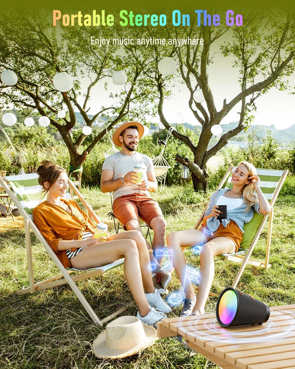 【Upgraded Bluetooth 5.3 Technology】Equipped with Bluetooth V5.3 , the bluetooth speaker promises a seamless and efficient wireless connection up to 164 feet. This high-fidelity portable bluetooth speaker delivers crisp, high-resolution sound, bringing the nuances and layers of your music to life. With a low distortion rate, bluetooth speaker preserves the integrity and clarity of every note, while its excellent sound stage performance immerses you in a rich, three-dimensional auditory experience.