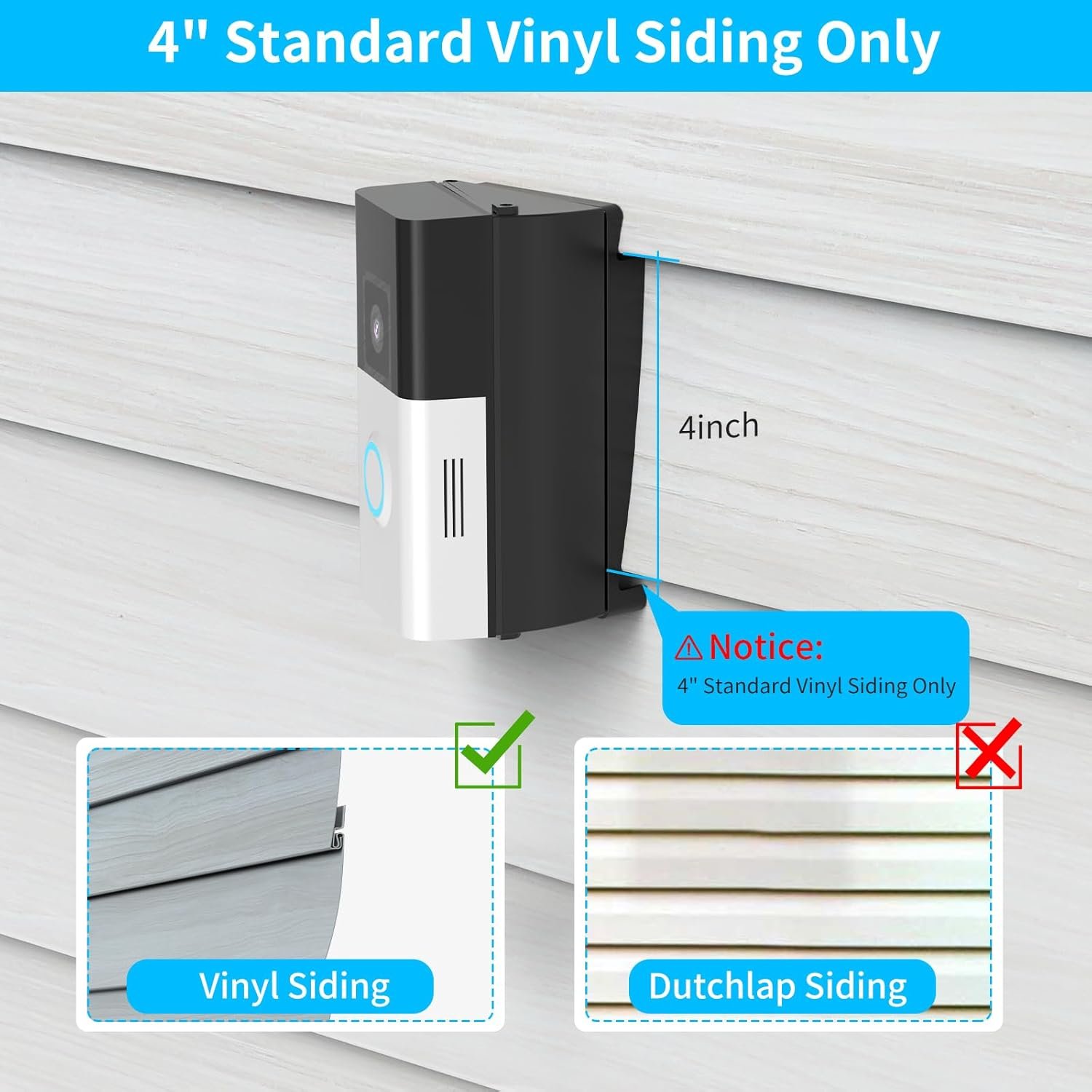 FLEXIBLE DOORBELL HOLDER: Designed specifically for vinyl siding. When used alone, it allows the doorbell to face forward (no angle adjustment). When used in combination, the doorbell can be adjusted 30-55 degrees to the right or left.