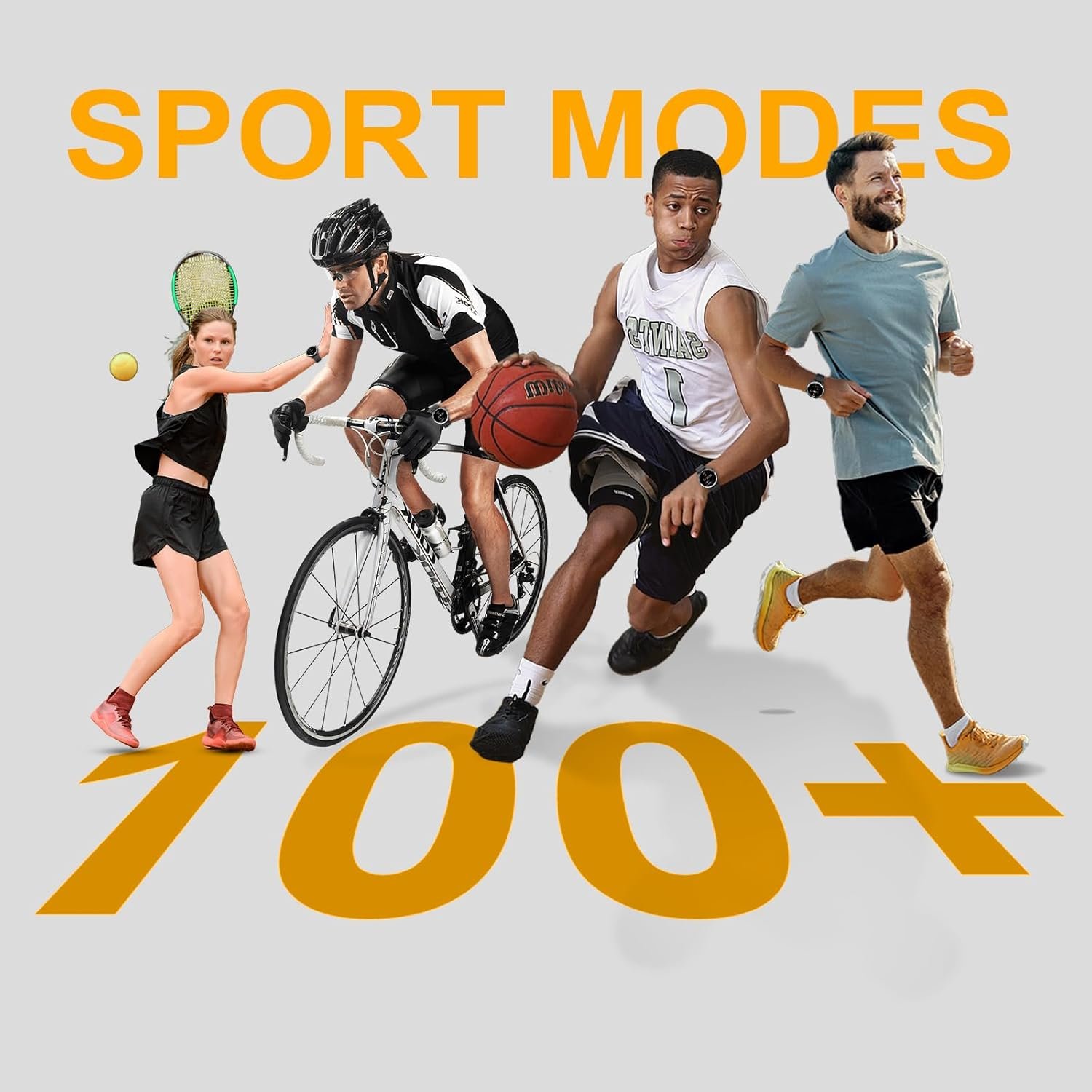 IP68 Waterproof and 100+ Sports Modes: The fitness tracker can provide 100+ exercise modes, such as running, yoga, outdoor sports, ball games, jumping jack, sit-ups, etc. It will record your data like heart rate, steps, calories burned, distance and active hours in real time. With an IP68 water resistance rating, this smartwatch can be worn even in the rain or when washing hands.