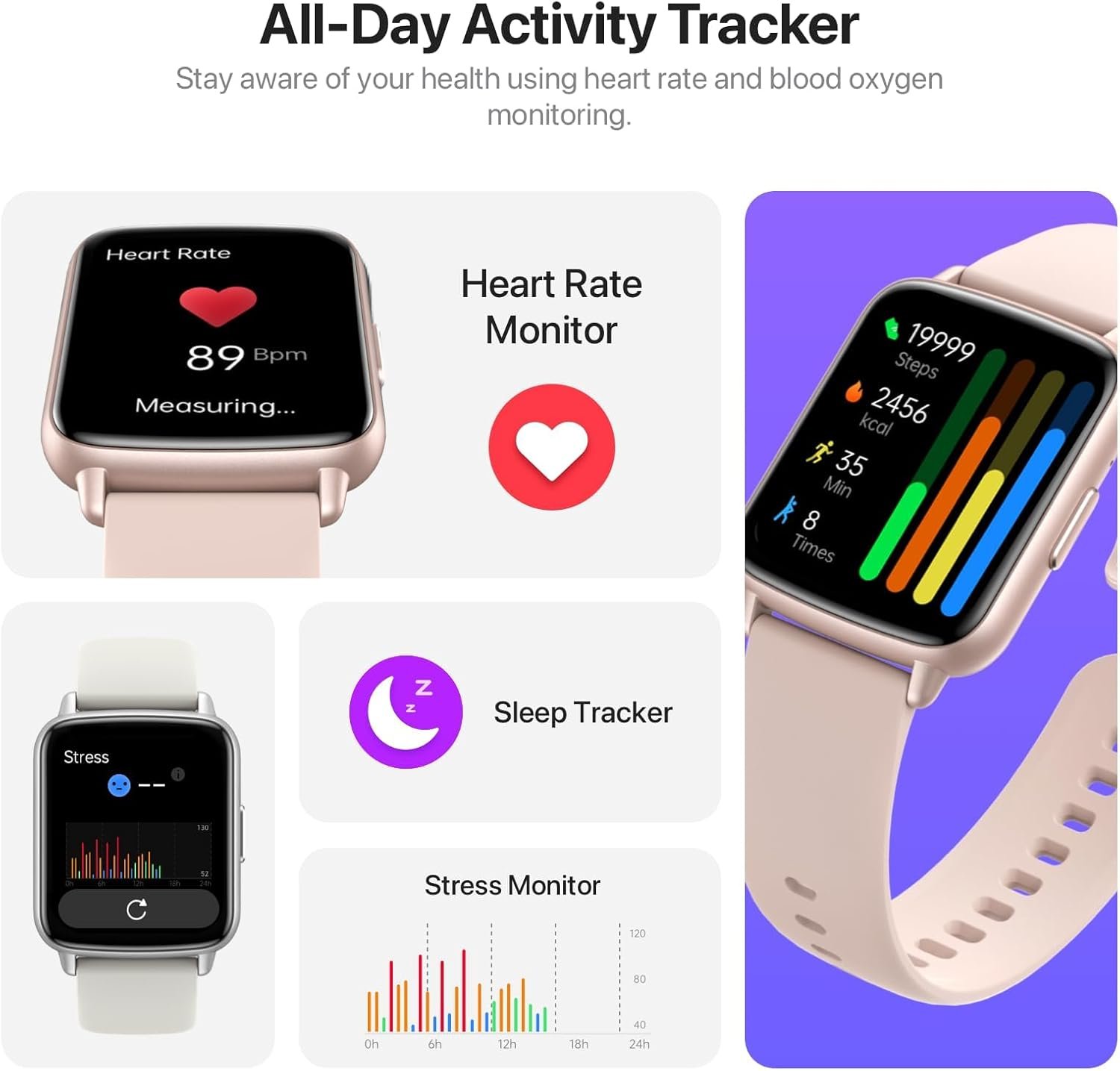 24 Hour Health Monitoring: This smart watch is compatible for most iphone and Android phones, and the digital chip inside is scientifically developed using the latest technology. The chip uses advanced sensors to monitor heart rate, blood oxygen and female cycle, and can also perform timely sleep quality tracking at night. All recorded data can be synced to your phone for analysis, providing valuable insights into your health and promoting lifestyle adjustments. (non-medical standard)