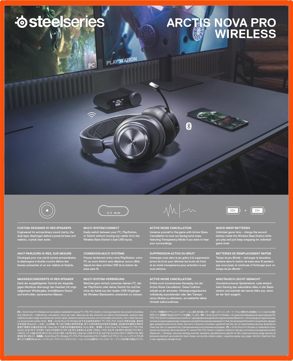 OLED Base Station – Dual USB ports let you connect your PC, Xbox, Mac, PlayStation, or Switch, swap between them with the press of a button, charge your spare battery, take full control over your EQ, volume, & ChatMix directly without leaving your game