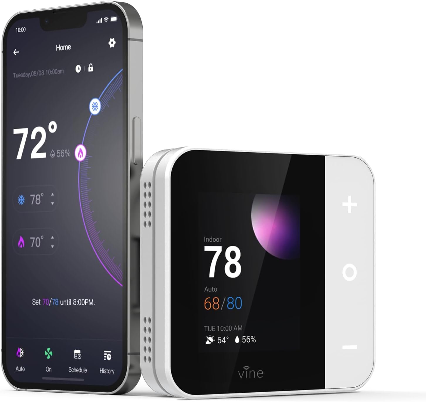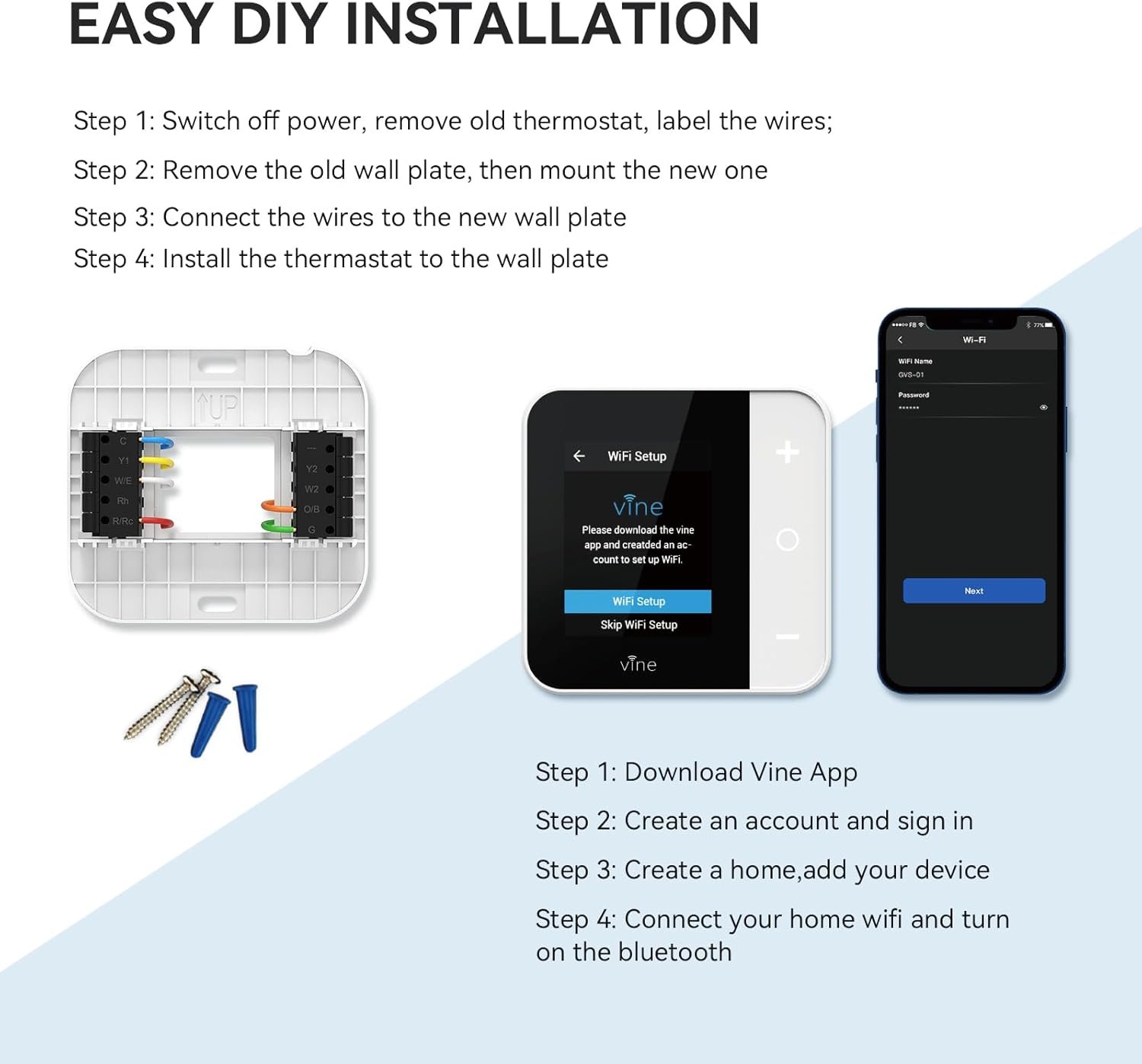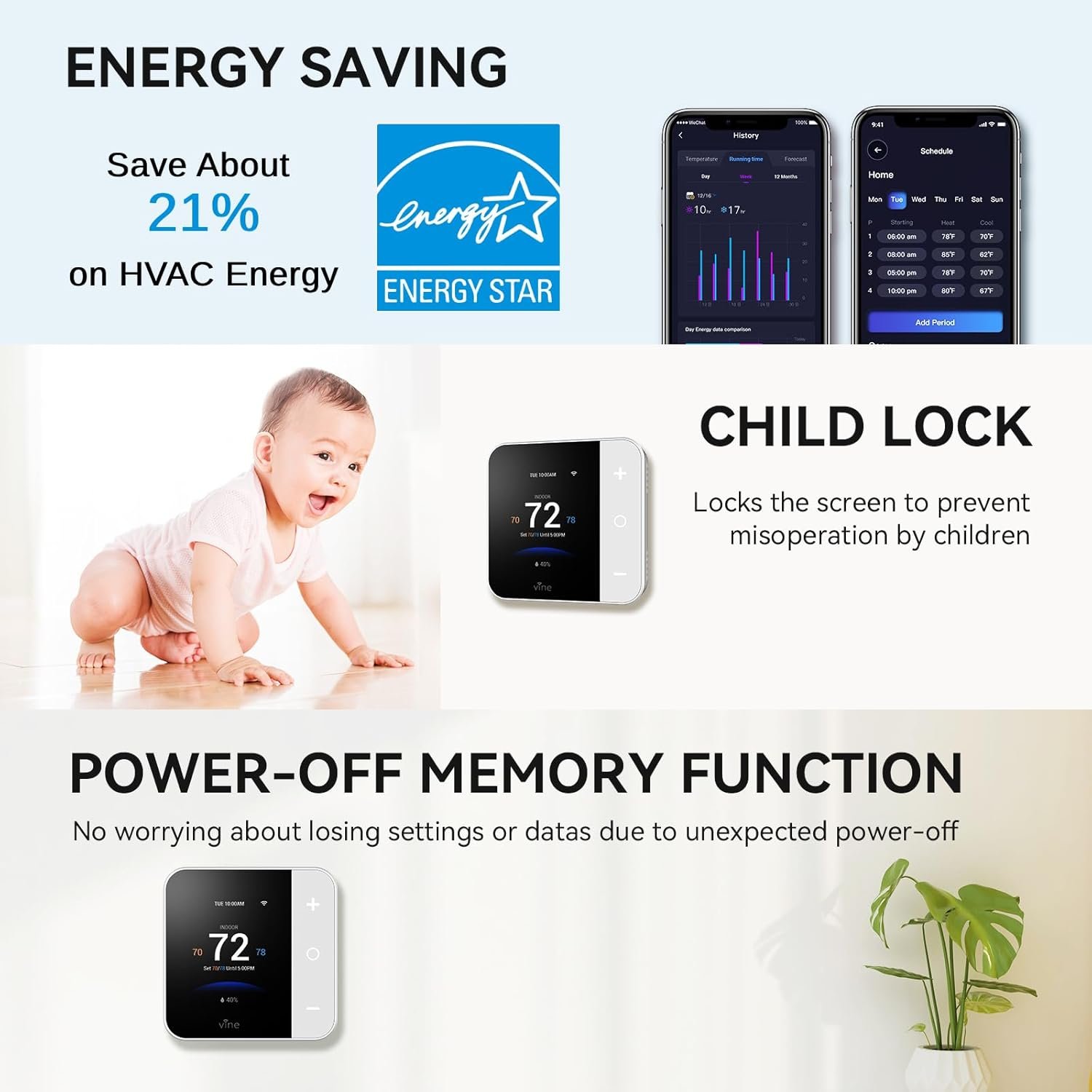 【Remotely Control & Voice Control】Control and monitor the wifi thermostat from anywhere using Vine Thermostat App or Smart Life App; Compatible with Alexa and Google Home for hands-free voice control
